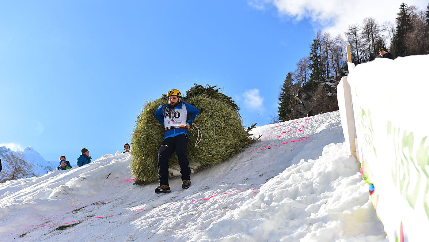 Con il duathlon con un carico di fieno e l'arrampicata su ghiaccio come discipline, il Val Passiria si riaccende una vecchia tradizione contadina.