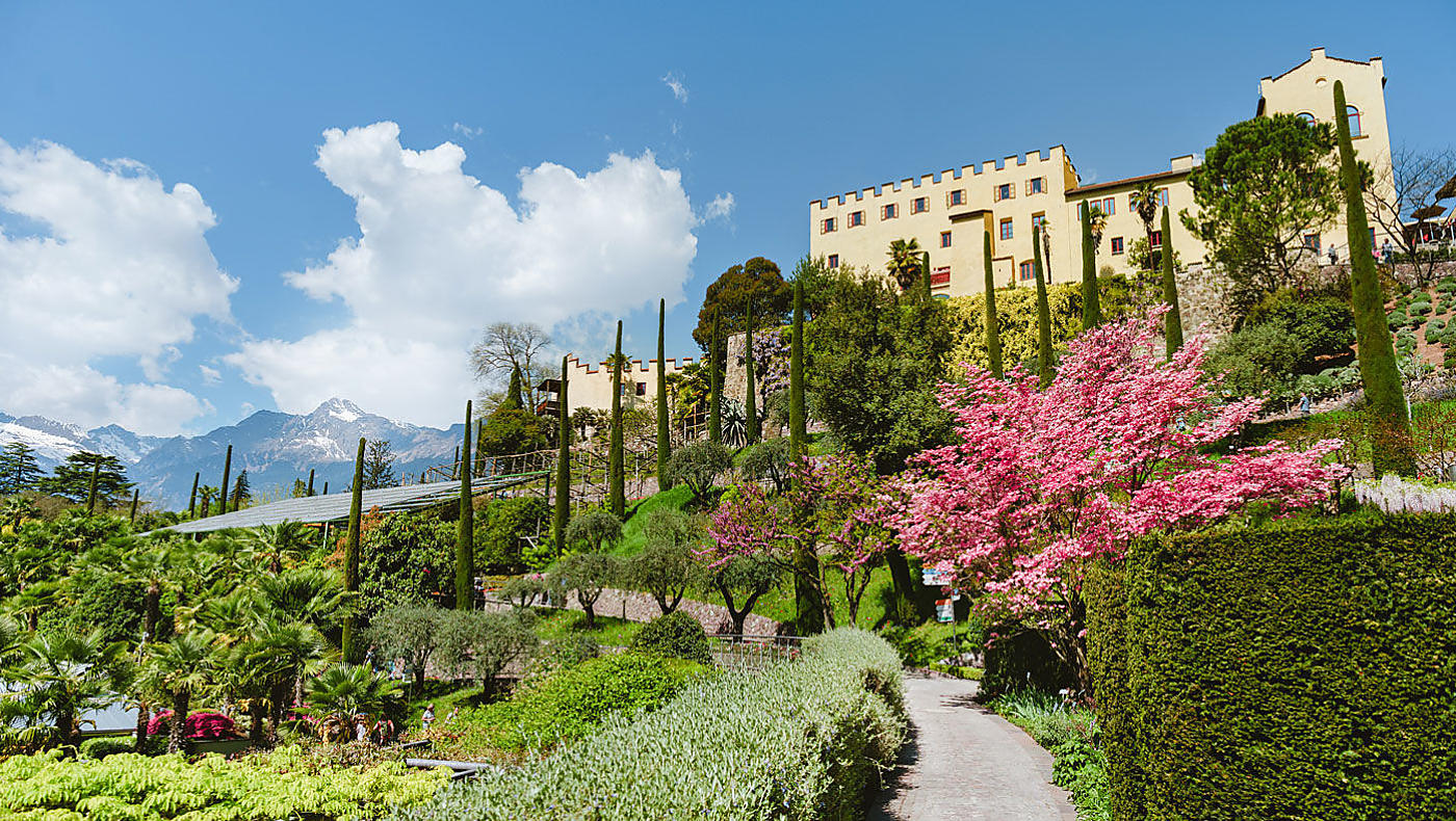 Attorno all'ex residenza invernale dell'imperatrice Sissi d'Austria, si estendono ora degli eccezionali giardini botanici. Situato nella periferia orientale di Merano, si estendono su dodici ettari. Nei Giardini di Castel Trauttmansdorff, le piante sono disposte secondo la loro origine. Per esempio, paesaggi naturali come la foresta alluvionale giapponese stanno accanto a paesaggi coltivati a terrazze, come nelle risaie e nelle piantagioni di tè. Grazie alle condizioni climatiche di Merano, qui si possono realizzare molte cose che sarebbero impossibili a nord delle Alpi. A Trauttmansdorff, le piante del deserto del Messico e gli alberi delle paludi della Florida vivono all'aperto tutto l'anno. Vecchie piante mediterranee coltivate, come ulivi, viti, fichi, cipressi e lavanda, portano un angolo di Sud tra le montagne. I sentieri si snodano su per il pendio attraverso le terrazze e aprono la vista sulle montagne circostanti.