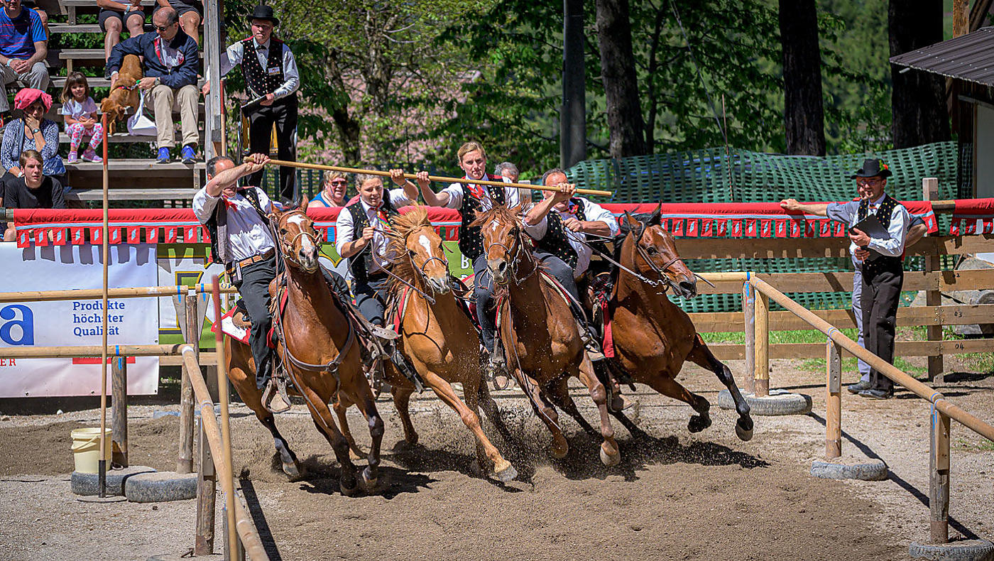Nel nome del più importante poeta di lingua tedesca del tardo Medioevo, durante la Cavalcata Oswald von Wolkenstein squadre di quattro cavalieri si sfidano in varie prove. Queste sono Ringstechen, Labyrinth, Galopp o Tor-Ritt e risalgono al tempo dei minnesinger altoatesini. In una cornice di supporto di paesaggi fantastici, folclore altoatesino, costumi tradizionali colorati e magnifici cavalli, lo spettacolo attira sull’Alpe di Siusi appassionati da tutta Europa. Il pubblico della Cavalcata Oswald von Wolkenstein si immerge nel XIV secolo e sperimenta in prima persona l'atmosfera medievale, l'abilità equestre e l'ospitalità altoatesina.