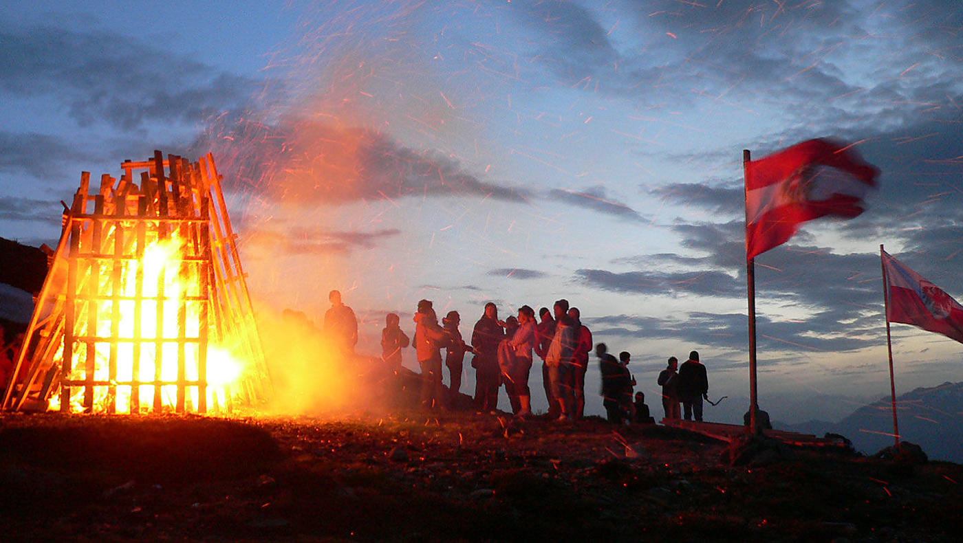 Dal 1796, ogni anno nel mese di giugno, dopo il Corpus Domini l'Alto Adige accende i "Fuochi del Sacro Cuore". Si tratta di un voto che la popolazione rinnova con fervore. L'usanza dei fuochi del Sacro Cuore risale ad un’iniziativa dell'abate di Stams, tra i principali ca dei massimi rappresentanti del popolo nell'anno 1796. Quando giunse la terribile notizia che le truppe francesi di Napoleone I stavano marciando verso il Tirolo da Milano, fu formato un consiglio di guerra. L'abate fece infine la proposta di cercare l'assistenza divina. Hanno promesso di celebrare una festa del Sacro Cuore di Gesù con messa solenne e sermone in tutto il paese se il Signore assisterà la terra. Ovviamente hanno avuto successo. Dopo la battaglia vittoriosa sul monte Isel nel 1809, il famoso combattente per la libertà Andreas Hofer rinnovò questo voto con una grande festa. Allo stesso tempo, questo festival è stato elevato a festa permanente. Fino ad oggi, i fuochi del Sacro Cuore sono accesi non solo nel Tirolo originale, ma anche in Alto Adige dopo la divisione politica del paese, come fuochi di montagna visibili da lontano. La festa è tradizionalmente accompagnata, dopo la messa solenne, da una processione e dal "böllern", il tradizionale tiro a segno.