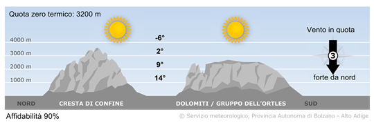 Per lunedì si prevede tempo molto soleggiato con solo qualche nube alta in transito. Nelle valli più a nord soffierà il Föhn.