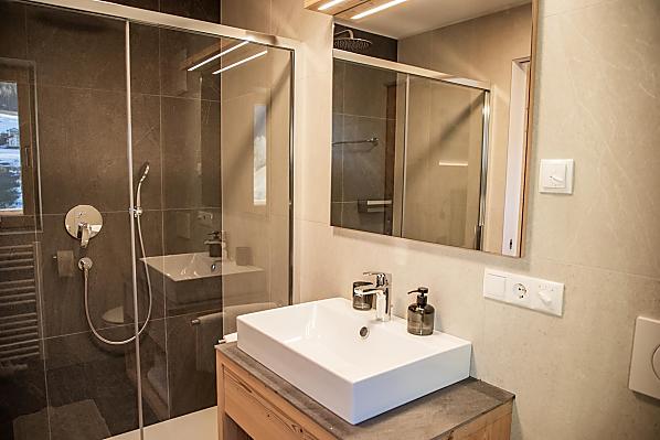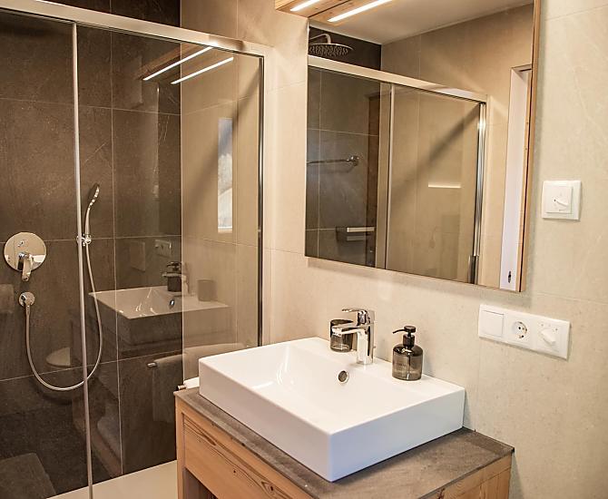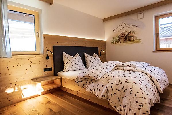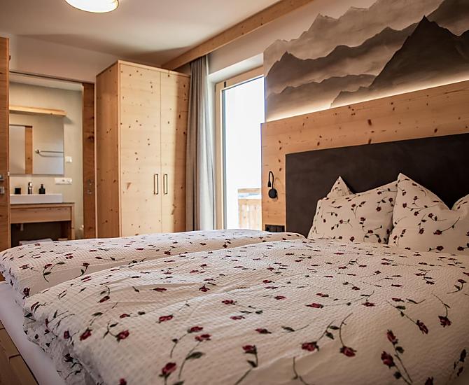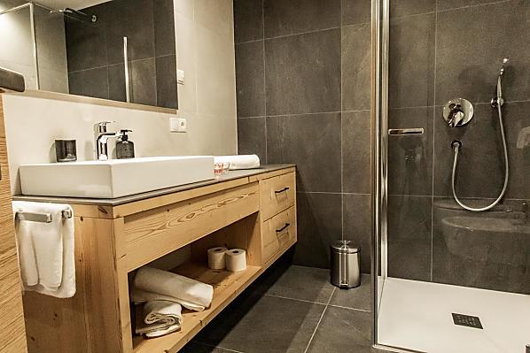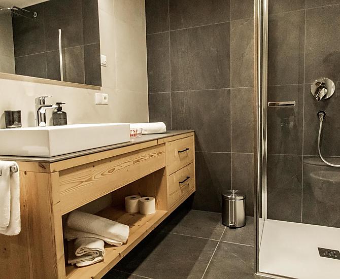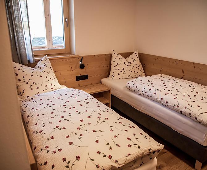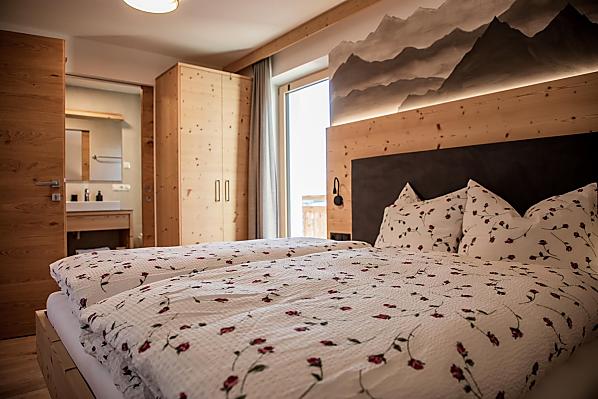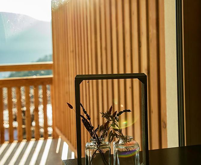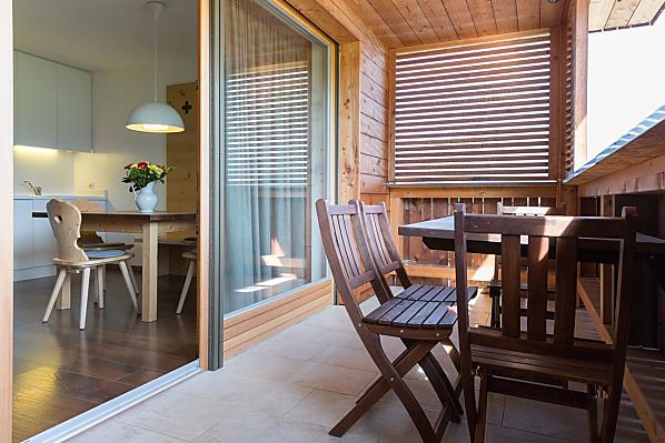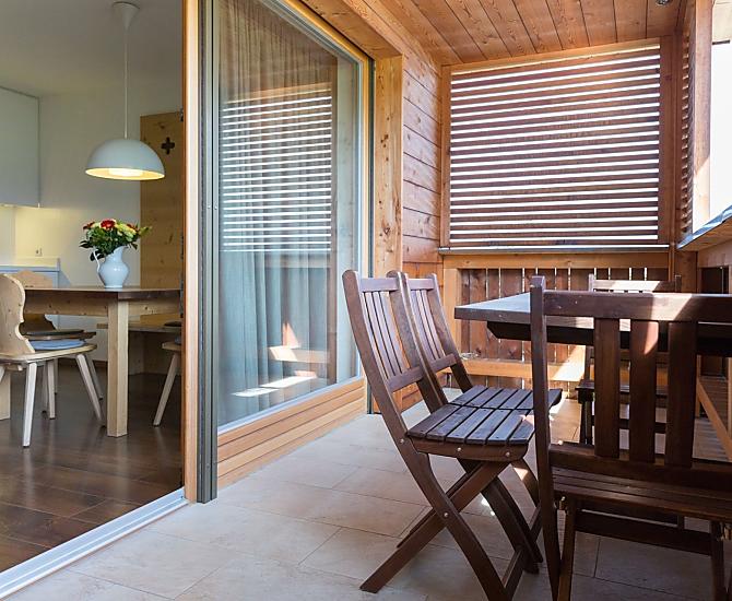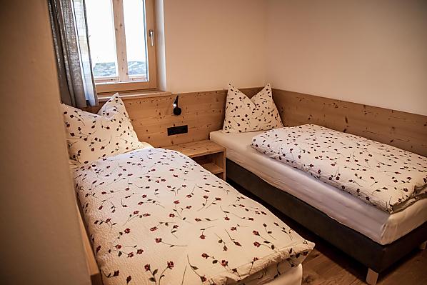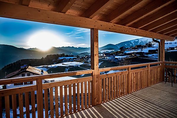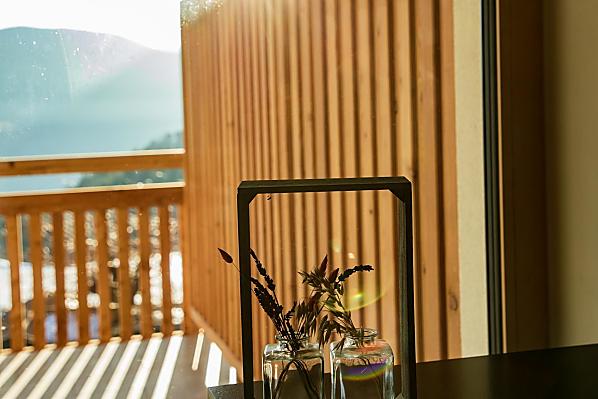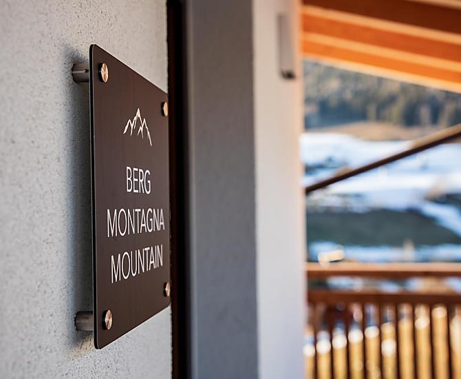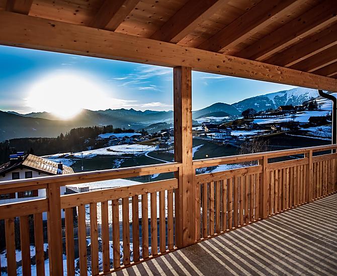 Nella zona dedicata agli ospiti – con ampia vetrata – si apre davanti a voi uno splendido panorama sulla valle e sulle Dolomiti.