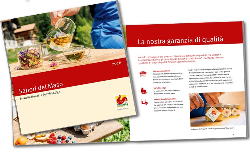 Qui riceverai la tua copia personale e gratuita della guida "Prodotti di qualità del maso 2026" con tutte le 90 aziende di marketing diretto e le idee per le ricette più sfiziose.