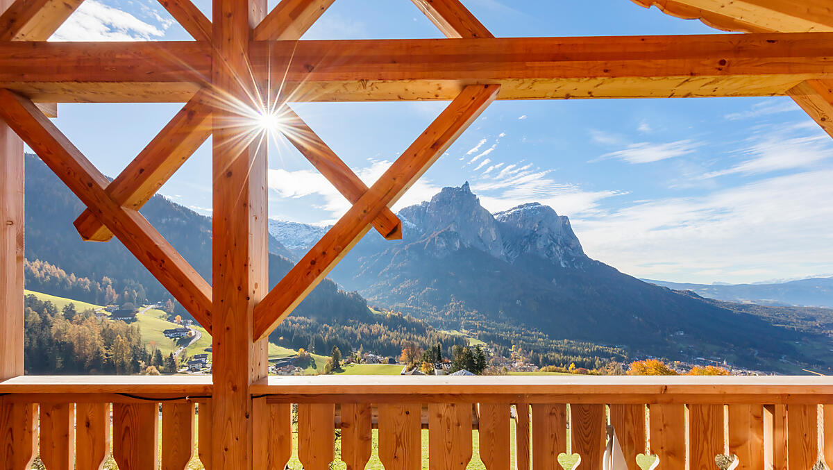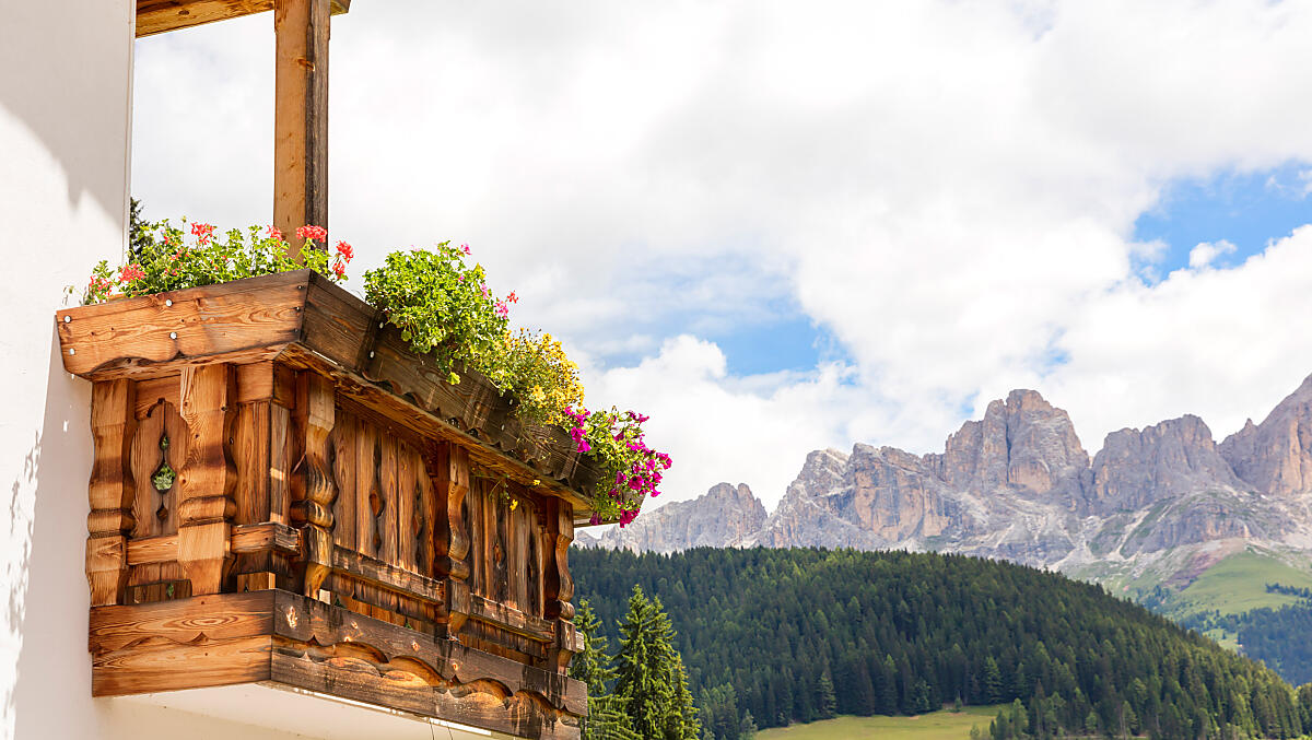 Qui, il balcone fiorito e la grandiosa vista panoramica sembrano gareggiare in bellezza: a Nova Levante, natura e orizzonte si fondono in un tutt’uno di grande suggestione.