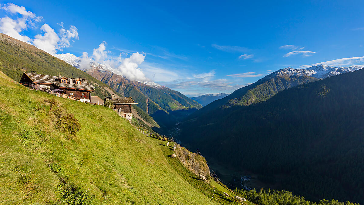 Chi ha detto che solo i vacanzieri amano i panorami mozzafiato? In molti masi della Val d’Ultimo, anche le mucche si godono l’aria fresca e la vista aperta sulle cime imponenti.