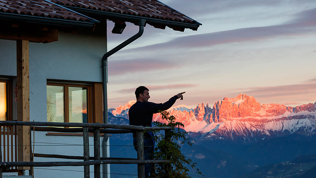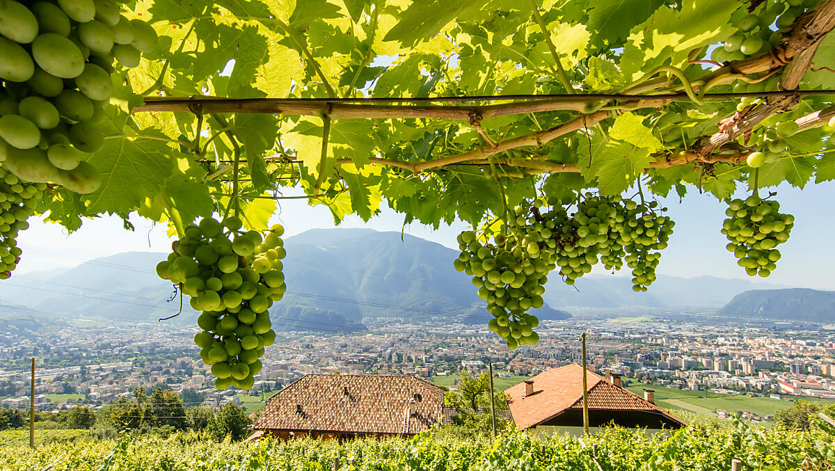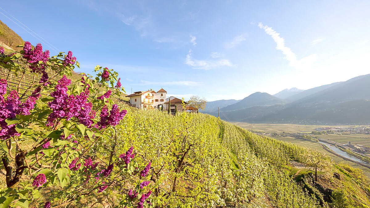 Dai masi troneggianti sulla città, lo sguardo spazia libero sulla conca bolzanina. Tra i vigneti, il fascino mediterraneo incontra la rilassata atmosfera del maso.