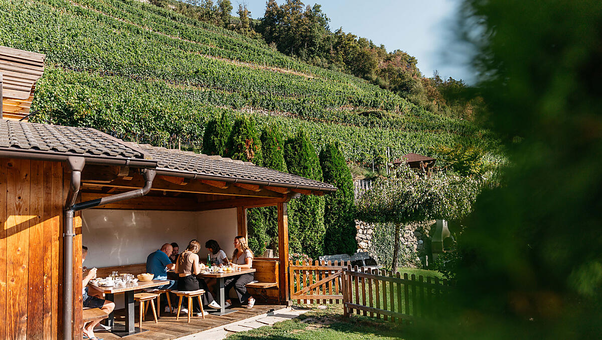 Un posto speciale per la colazione ti aspetta nei masi della bassa Valle Isarco, da Barbiano a Velturno. Siediti e assapora pane appena sfornato, una dolce composta di mele e confetture alla frutta, proprio ai piedi del vigneto.