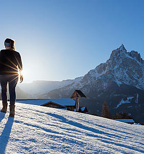 In Val di Funes ti godi la vista libera sulle imponenti Odle. Avvolti in una coperta calda e con un punch fumante tra le mani, è meraviglioso staccare la spina al sole d’inverno.